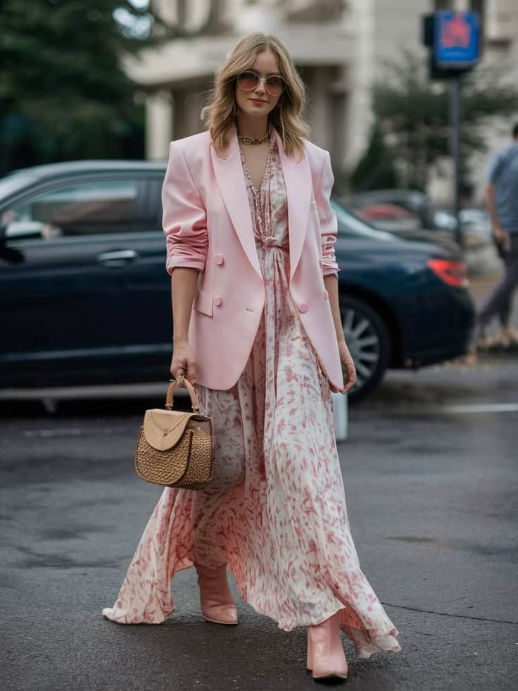 Pastel pink works beautifully in spring and summer outfits. It pairs well with white, beige, and light denim.