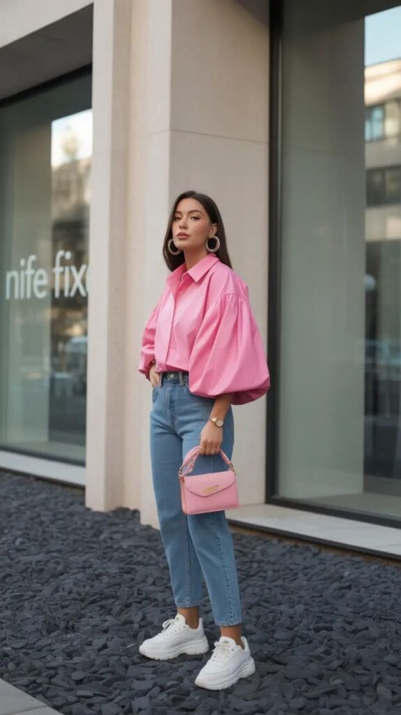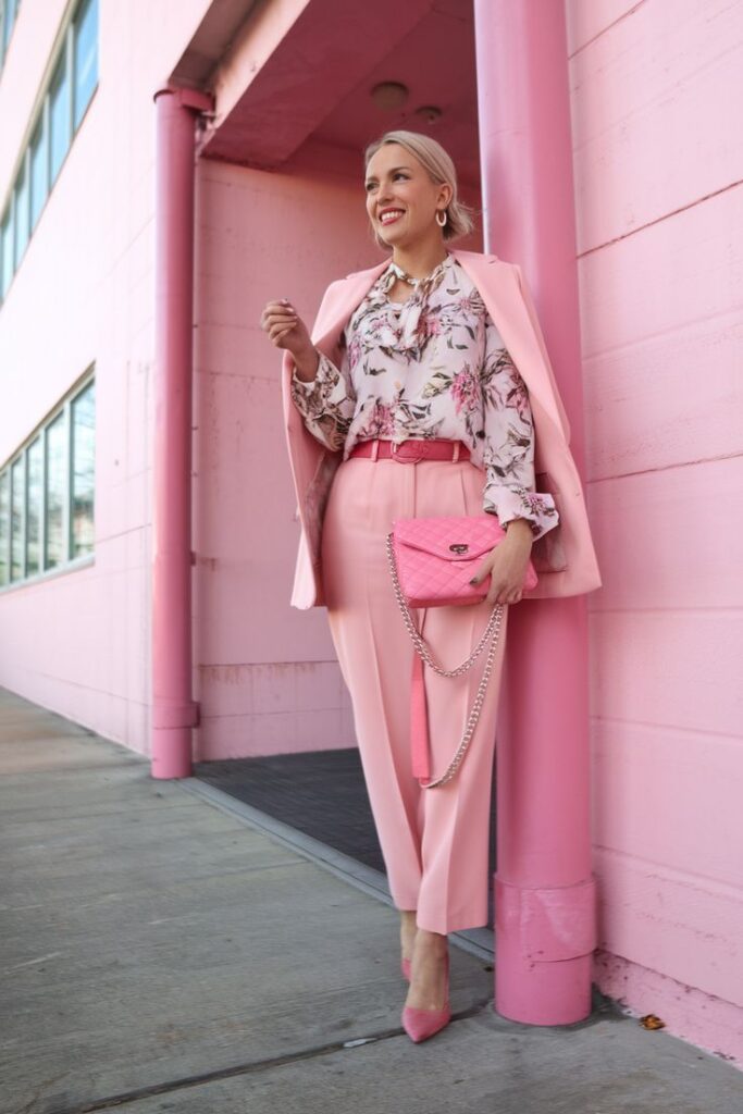 To avoid overwhelming outfits, mix pink with neutral tones. Use one statement pink piece and keep the rest subtle.